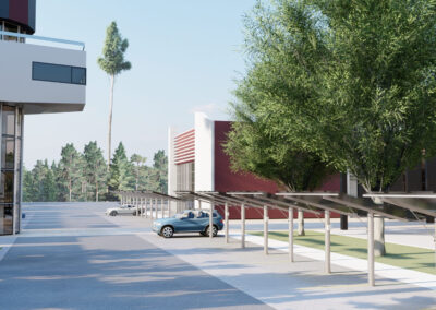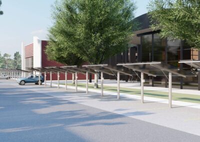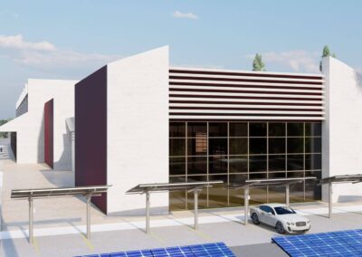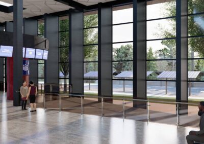The station’s design features a sleek, modern aesthetic with a focus on functionality and environmental harmony. The exterior is constructed from sustainable materials, including recycled steel and solar glass panels, which not only provide energy efficiency but also allow natural light to flood the interior, creating a bright and welcoming atmosphere.