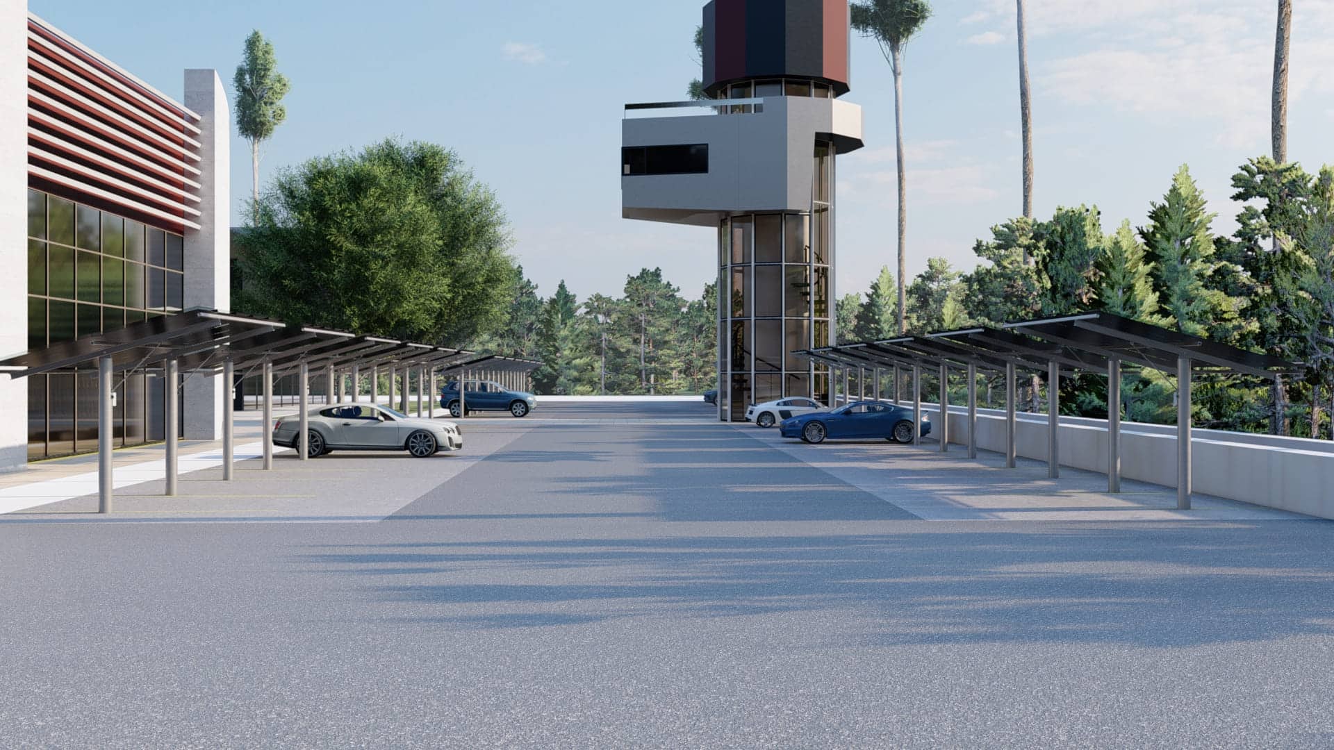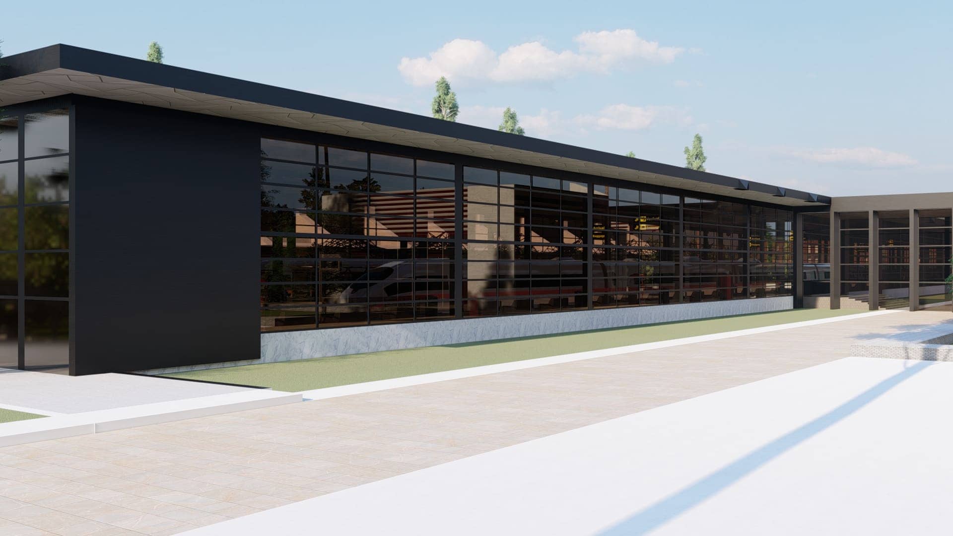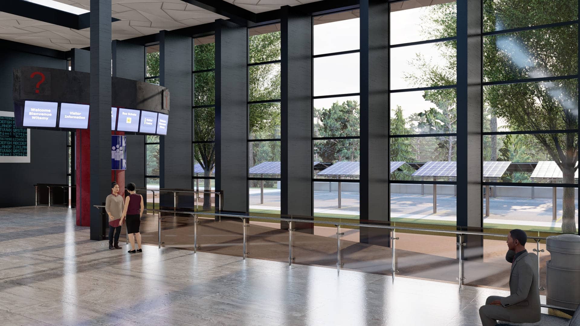 The station’s design features a sleek, modern aesthetic with a focus on functionality and environmental harmony. The exterior is constructed from sustainable materials, including recycled steel and solar glass panels, which not only provide energy efficiency but also allow natural light to flood the interior, creating a bright and welcoming atmosphere.