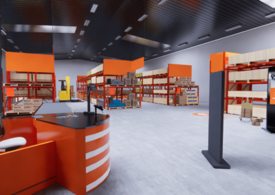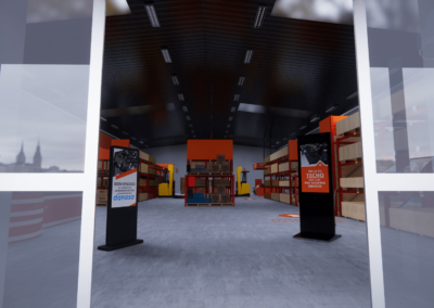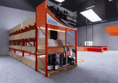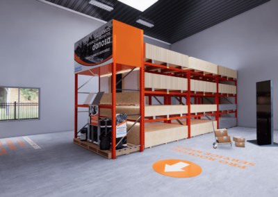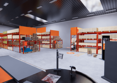 Adjacent to the storage area is the customer retail section, designed to provide a seamless shopping experience. Wide aisles and clearly labeled sections guide customers through the vast selection of hardware supplies, tools, and materials. Interactive kiosks and digital displays offer product information and DIY project ideas, enhancing customer engagement and convenience.