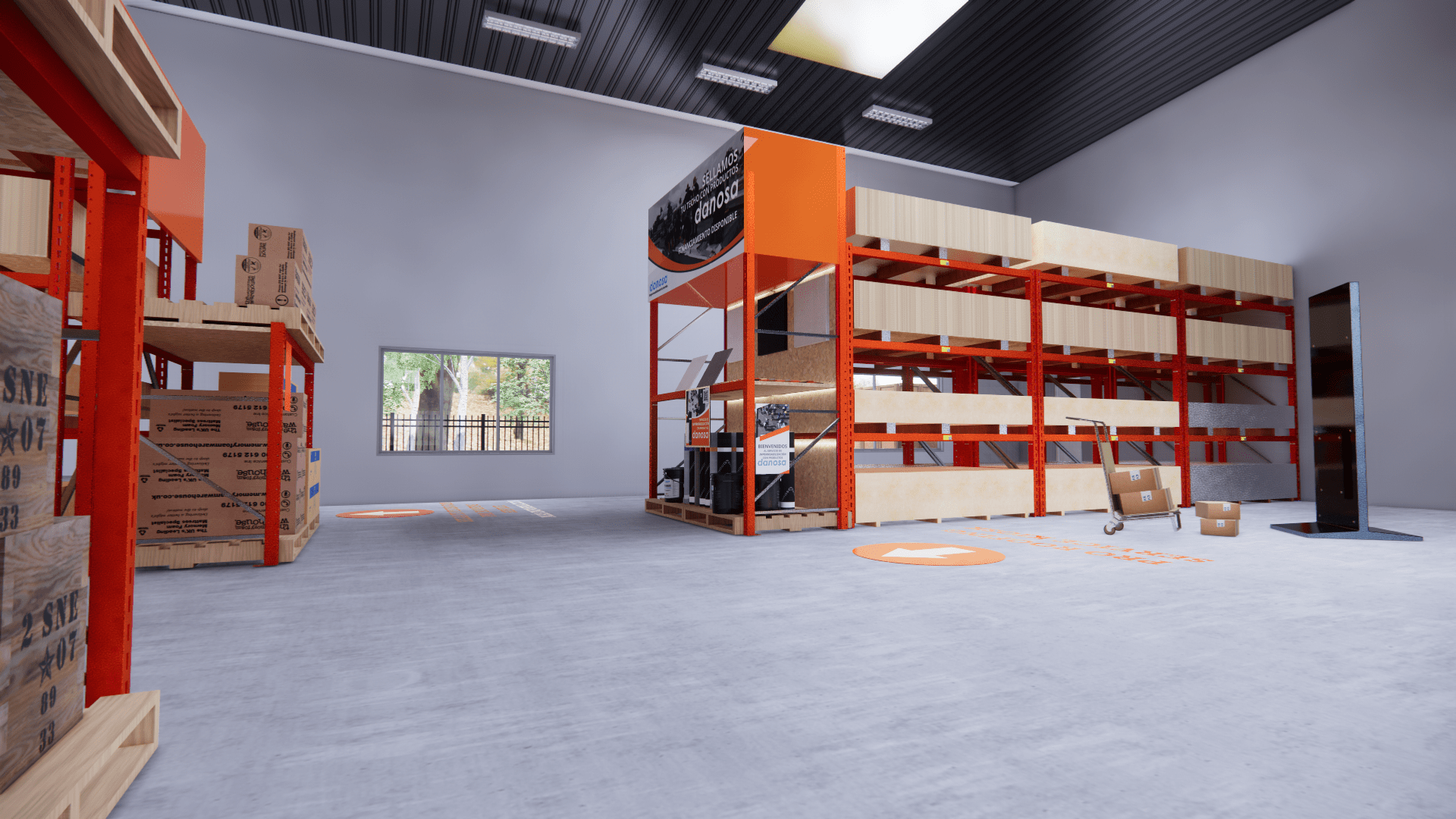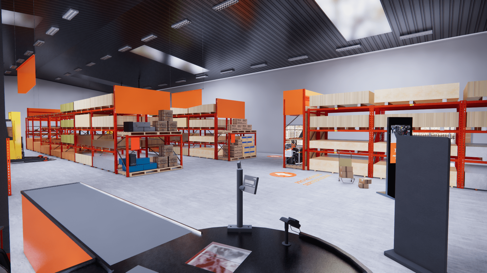 A dedicated area for bulk items and building materials is located near the rear of the warehouse, with direct access to loading docks for easy transportation. The layout also includes a spacious service counter and consultation area where customers can seek expert advice and assistance.