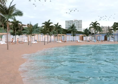 This project focuses on the creation of innovative and welcoming resting spaces on the beach, specifically designed to offer visitors a unique experience of relaxation and connection with nature. The proposal includes ergonomic seating that allows for comfortable reclining, strategically oriented to enjoy panoramic views of the sea.